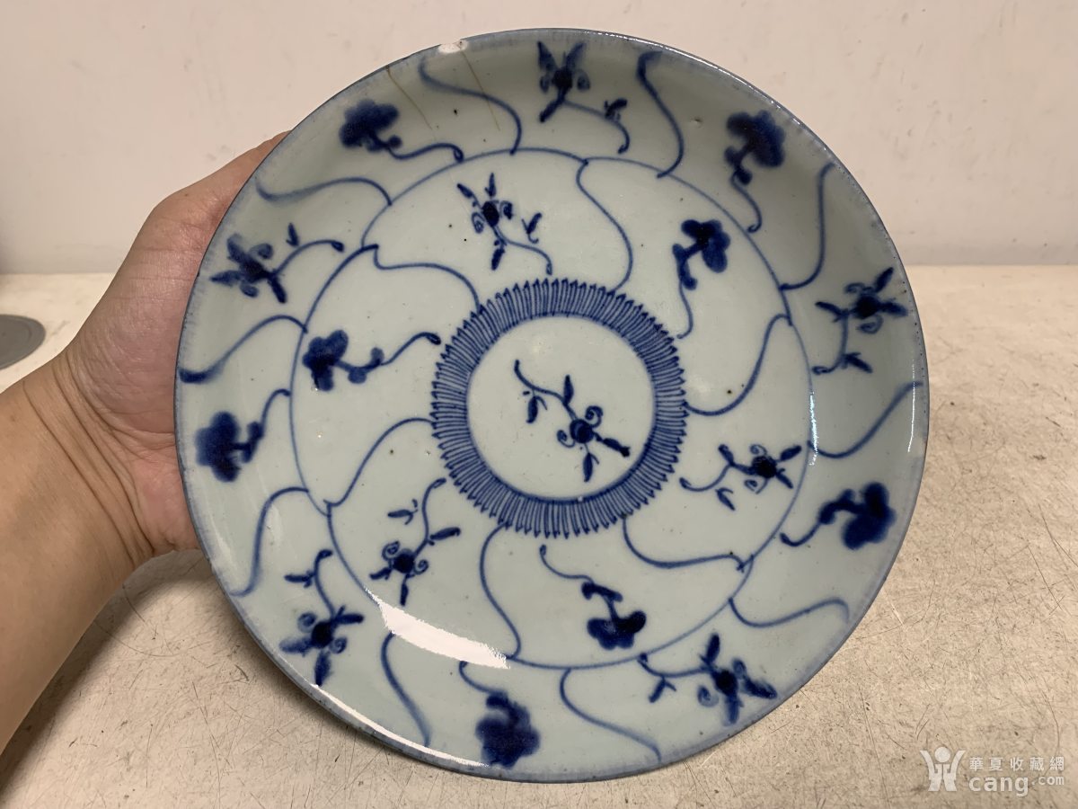 清末嘉庆道光青花灵芝盘