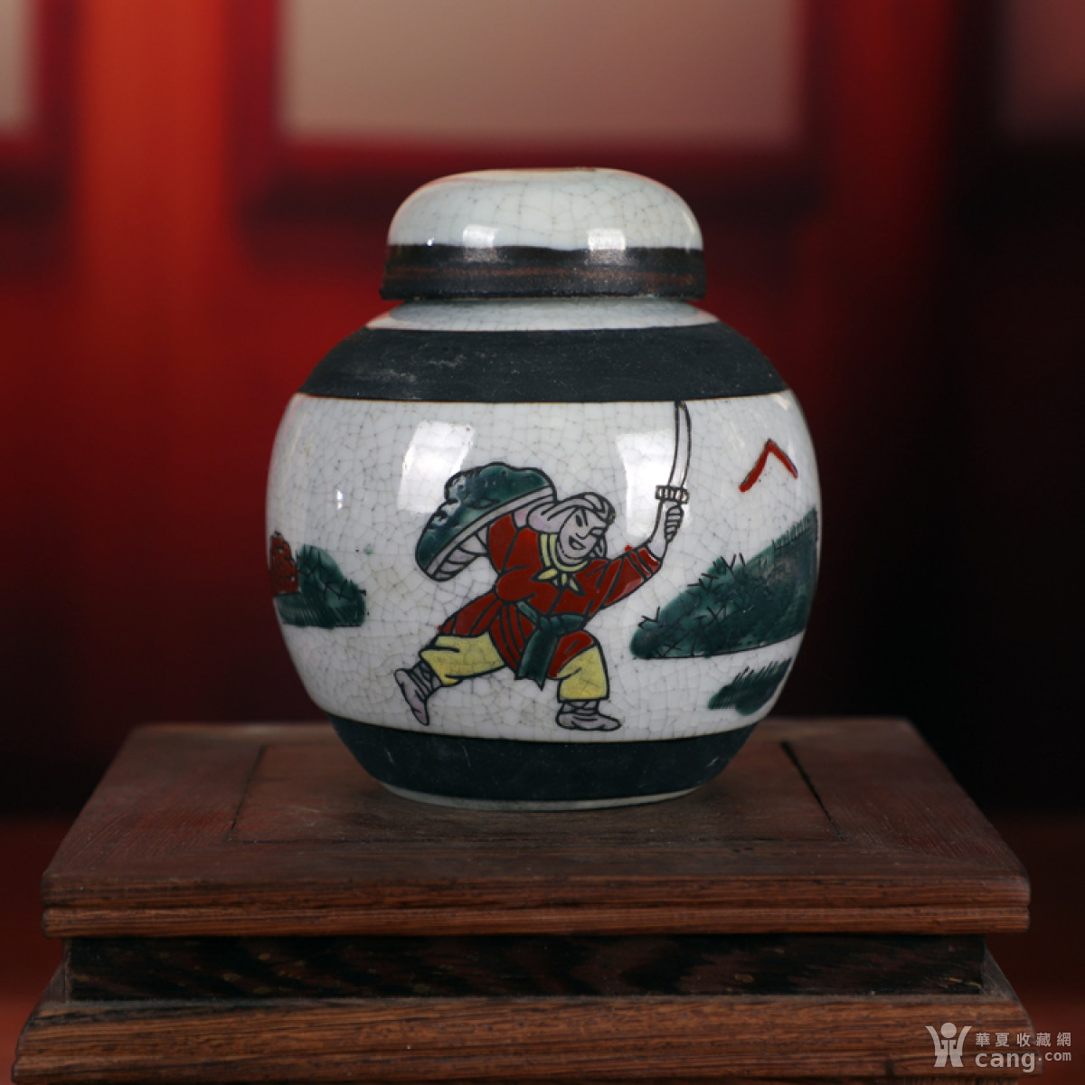 手绘铁骨泥战将冰裂纹宝珠坛茶叶罐