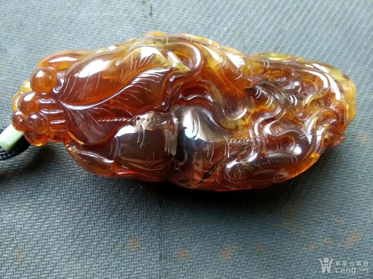 天然琥珀满工雕人生如意大个手把件