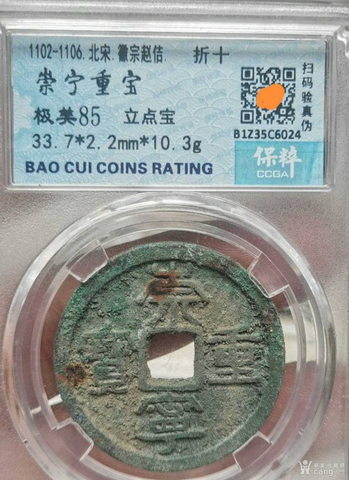 保粹评级盒子币,崇宁重宝,立点宝,绣色不错原状态,保真售出不