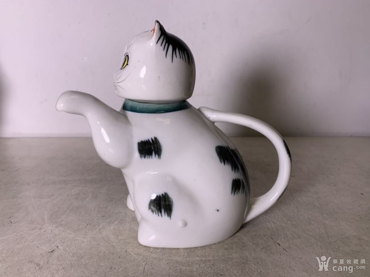 文革醴陵釉下彩猫型瓷壶