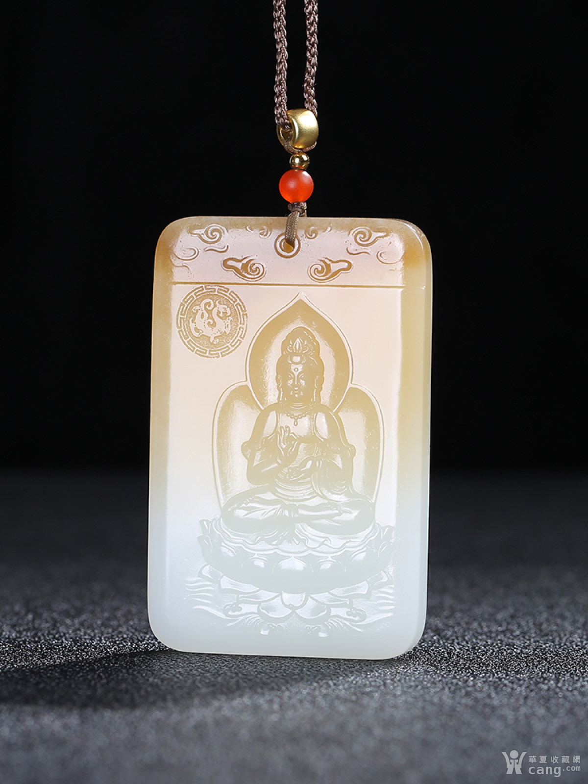 [普渡众生]和田玉糖白玉观音莲花鱼儿牌子挂件吊坠g