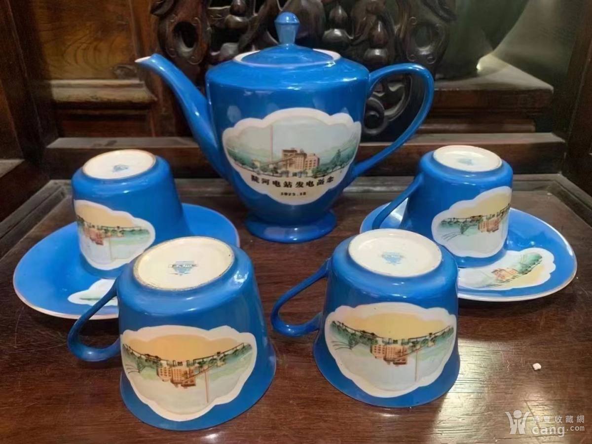 文革唐山瓷徒河电站发电留念茶壶茶具一套,