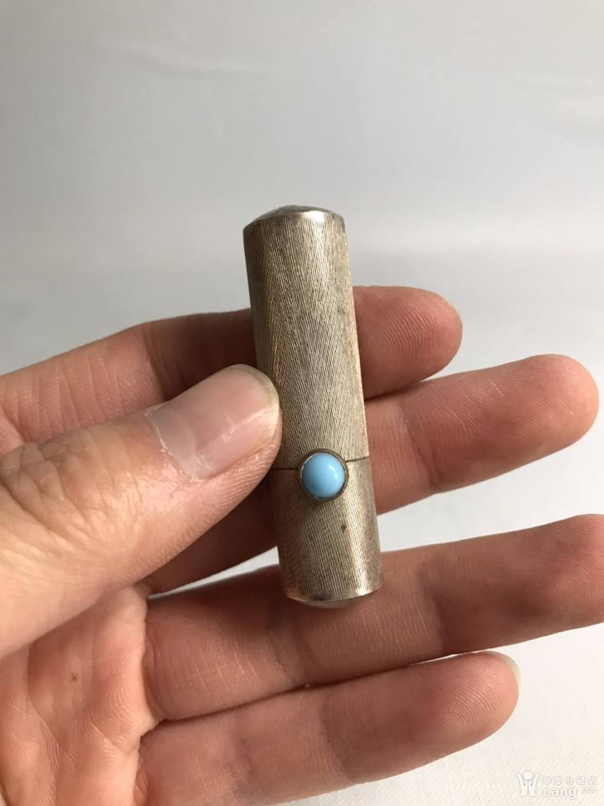 欧洲回流纯银嵌松石口红盒