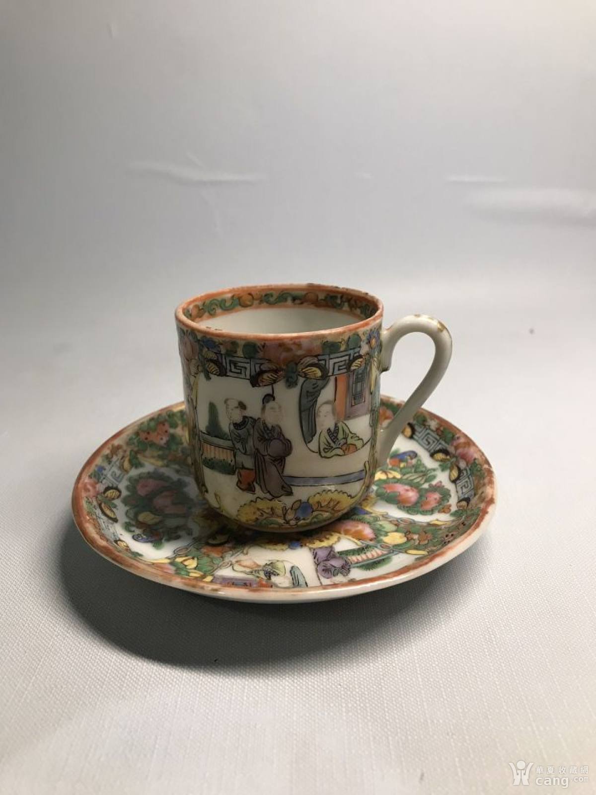 晚清广彩人物杯碟一套