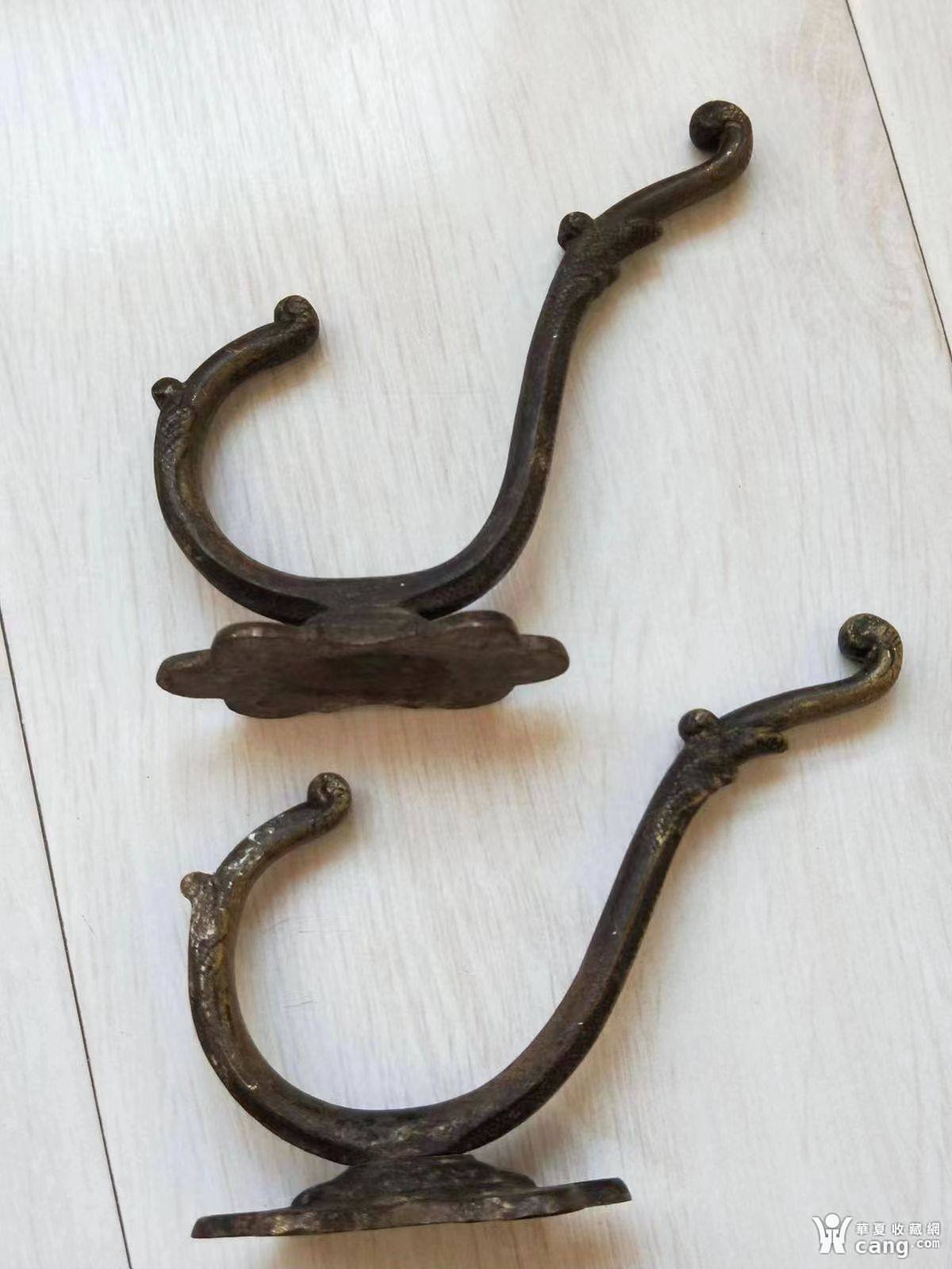好品厚重清代手雕龙纹铜衣挂钩一对