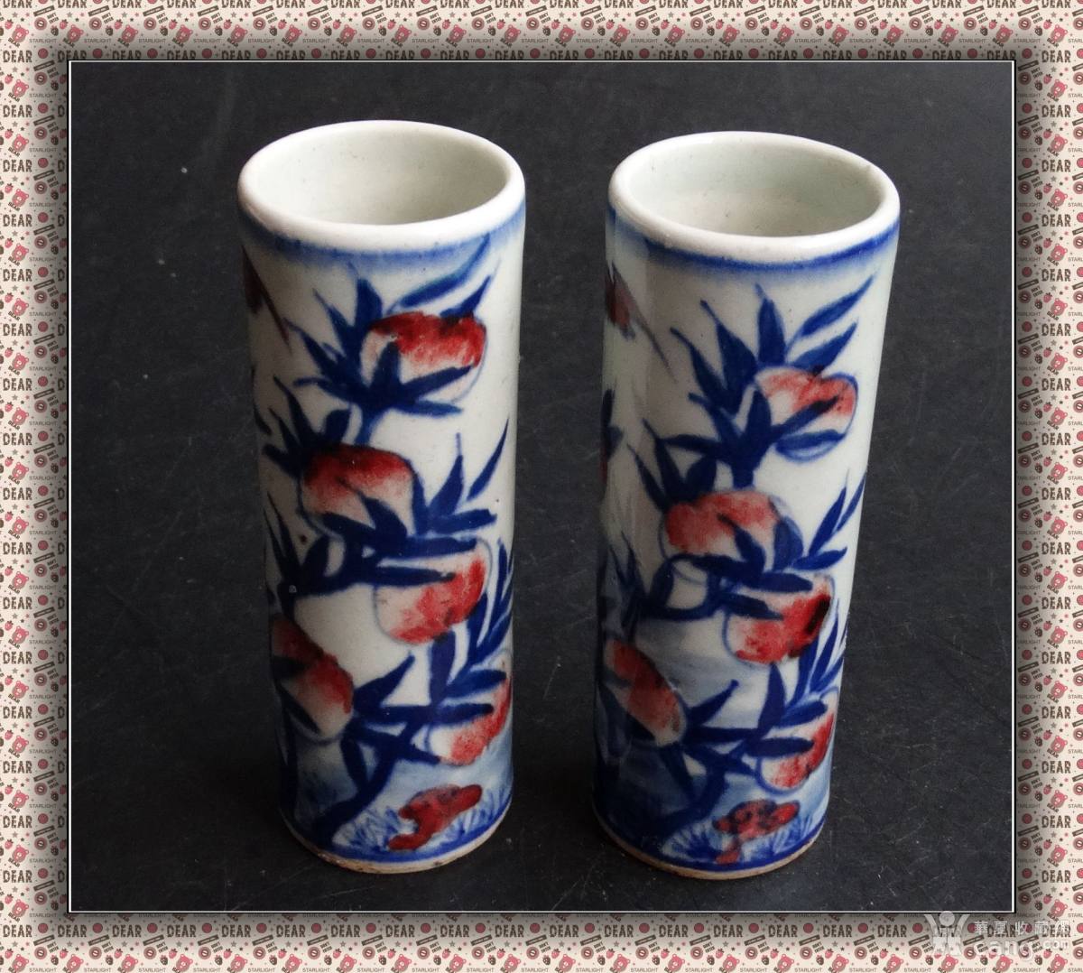 30#微瓶古玩古董瓷器收藏九桃纹釉里红彩绘微型帽筒摆件一对