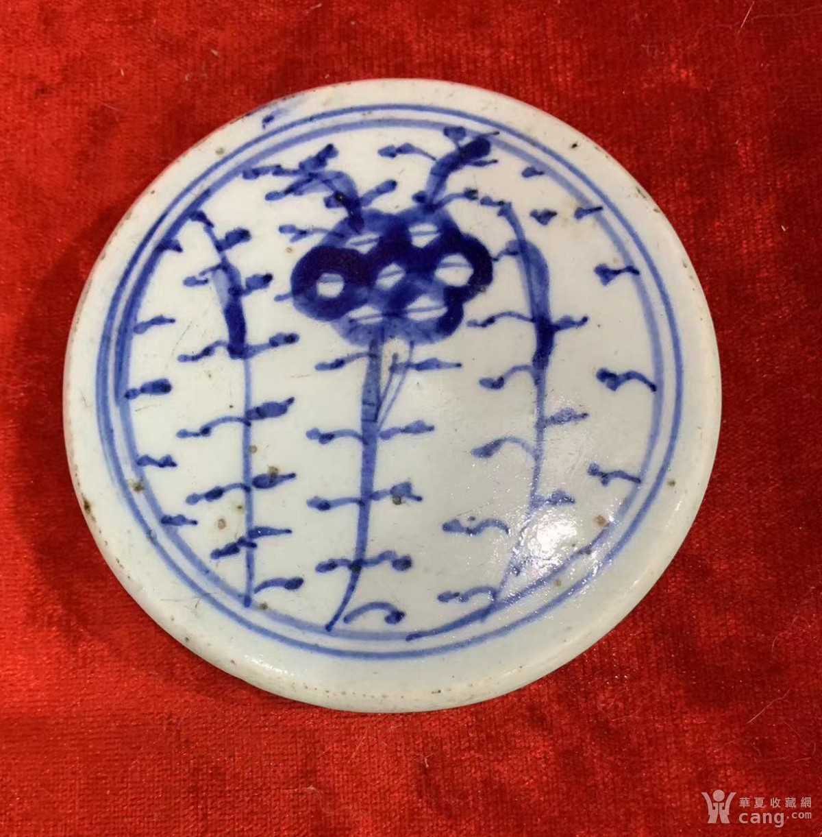 2033#配盖子罐盖清代乾隆景德镇花卉纹青花罐子老盖全美品