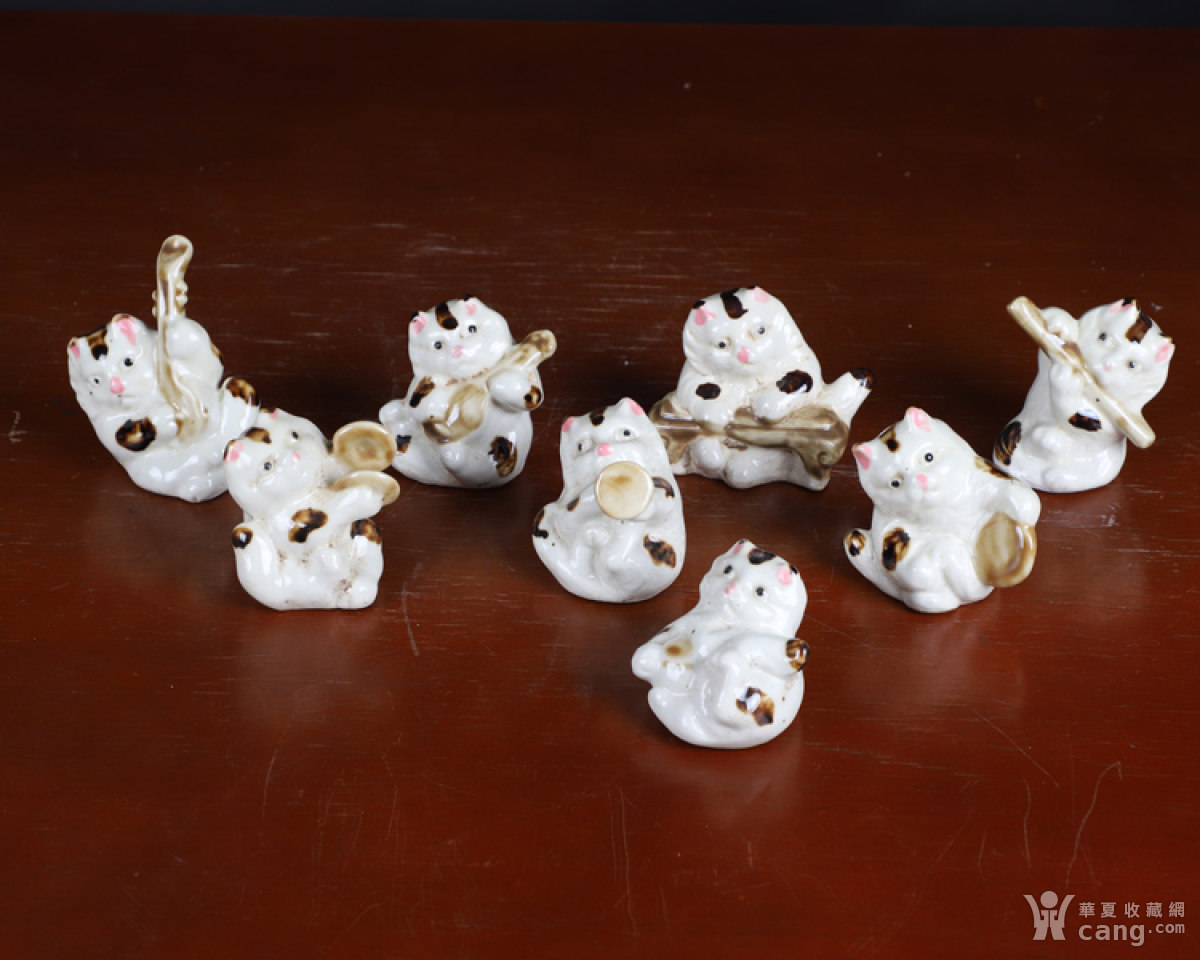 老厂货瓷器 音乐八猫一套