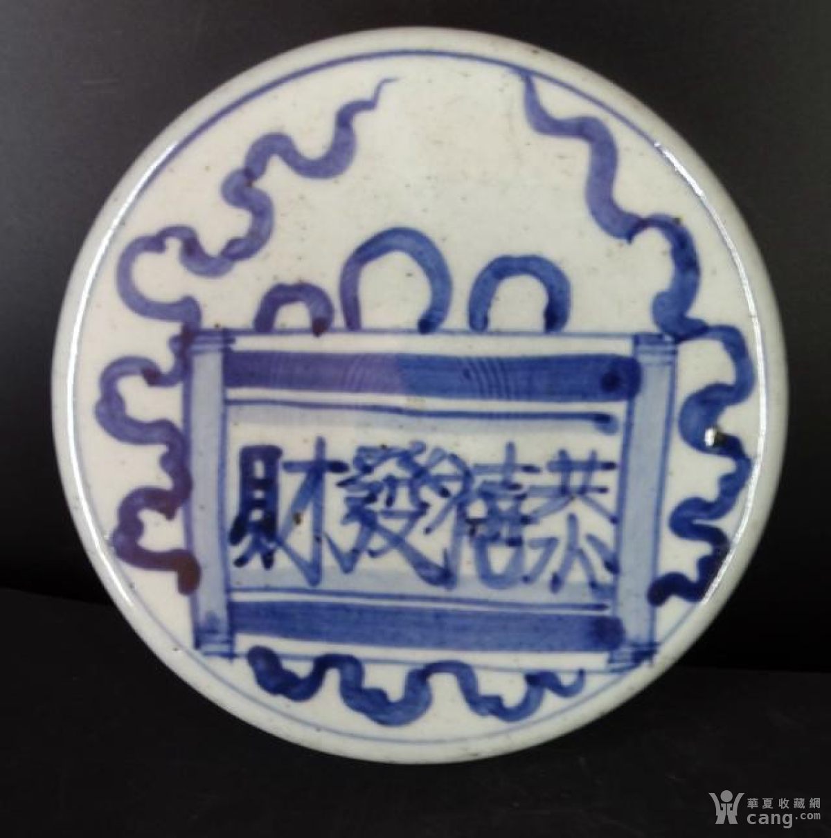 2029#古玩古董老货真品包老清代晚期恭喜发财青花罐子盖子