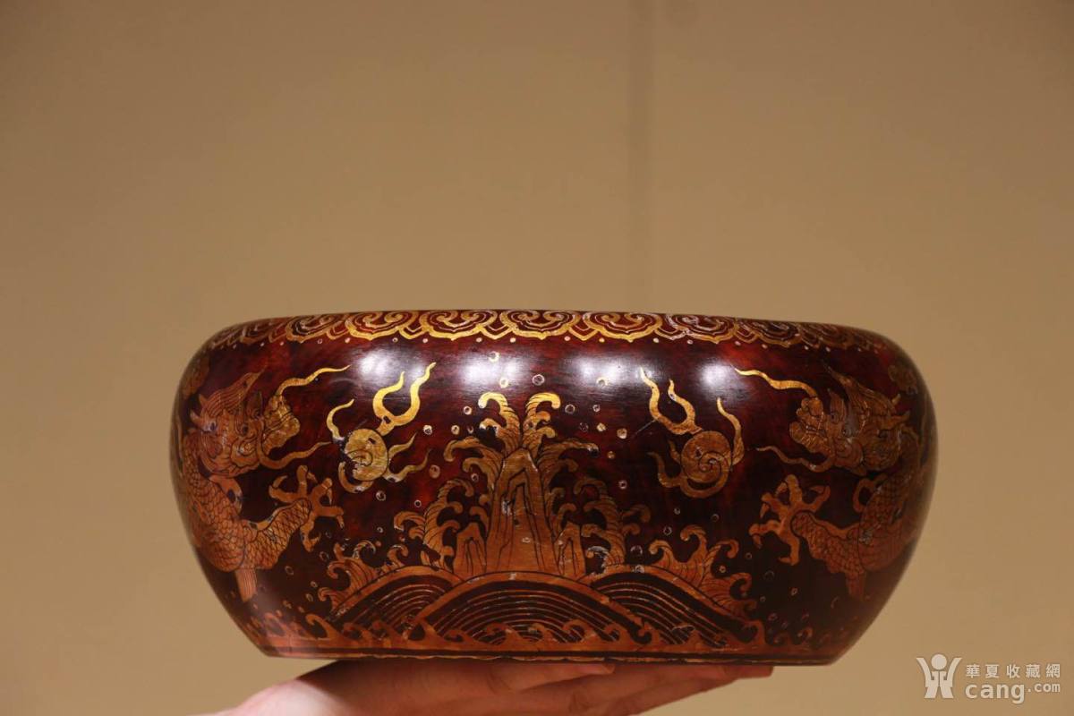 双龙戏珠大圆钵 此钵器型硕大,为一木整挖,圆润饱满,线