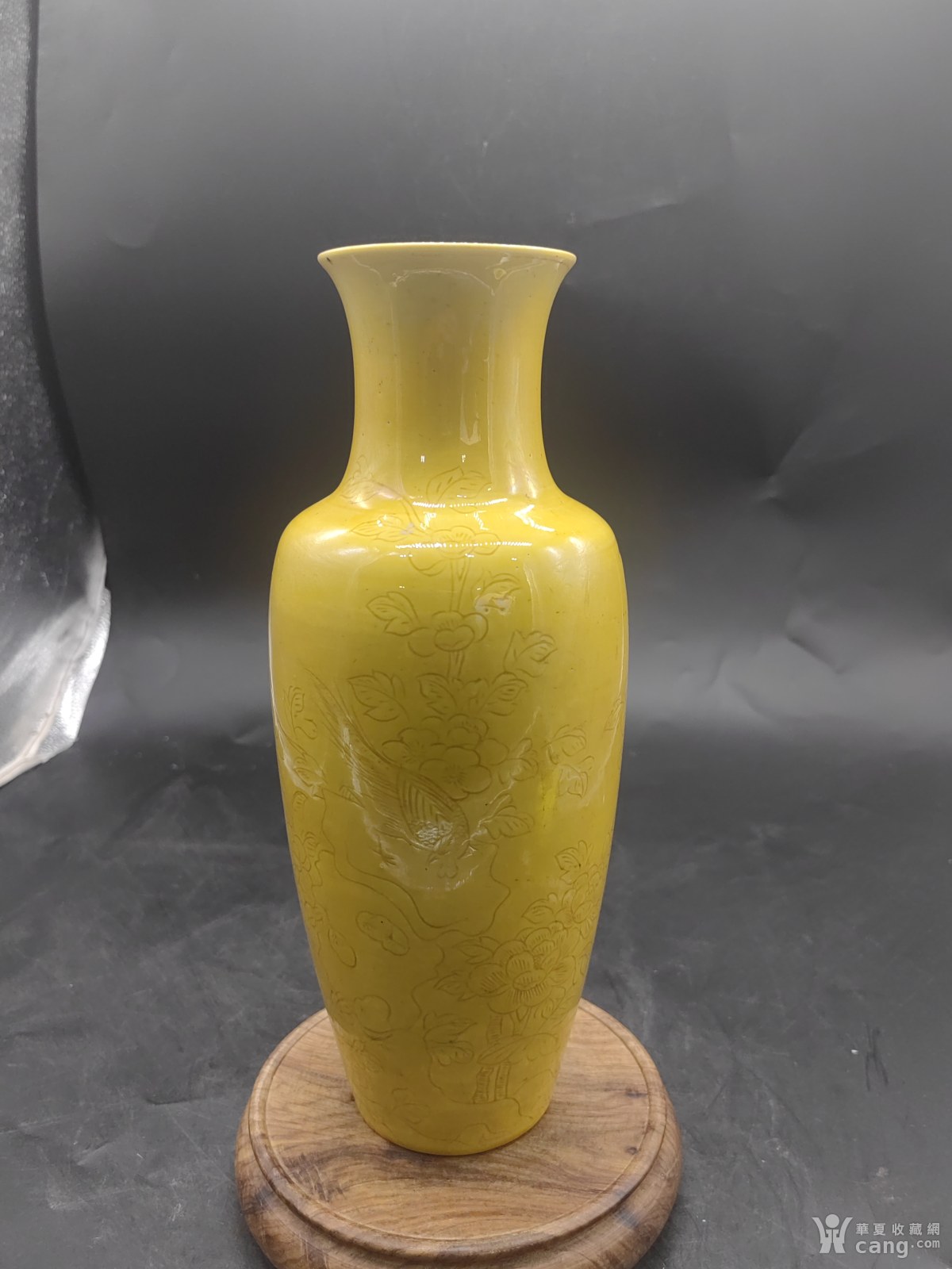清代黄釉刻花瓶