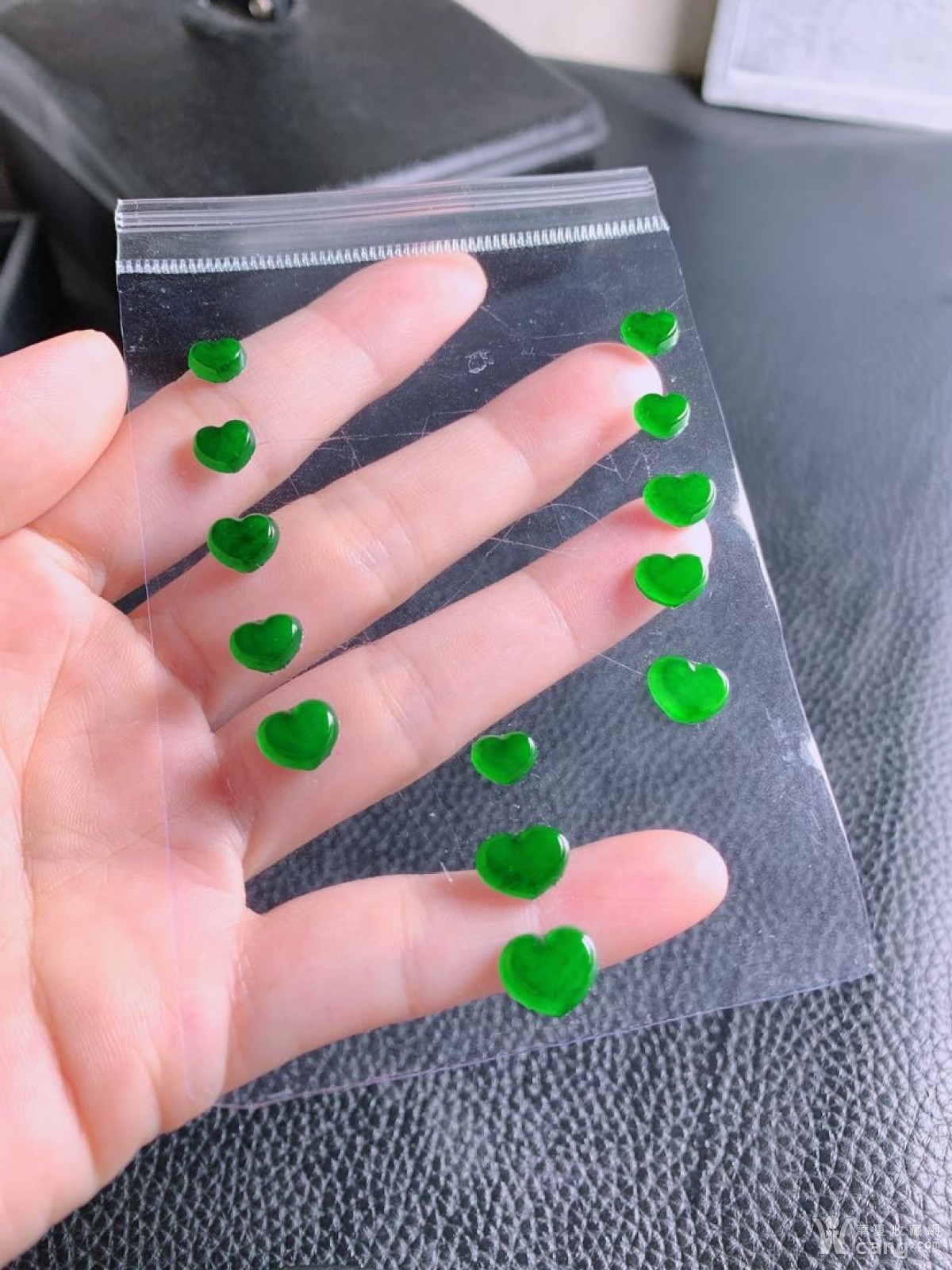 天然翡翠A货冰阳绿心心相印一套(13个) 尺寸:8.8*10