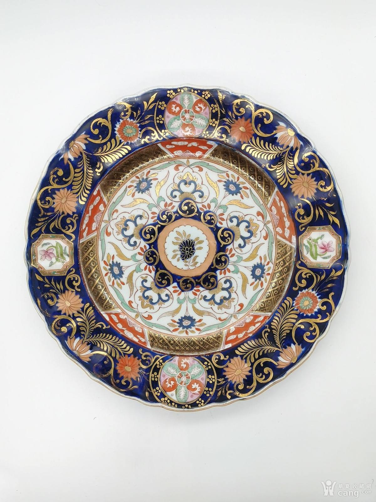 清晚期青花地粉彩鎏金花卉纹葵口纹章瓷盘