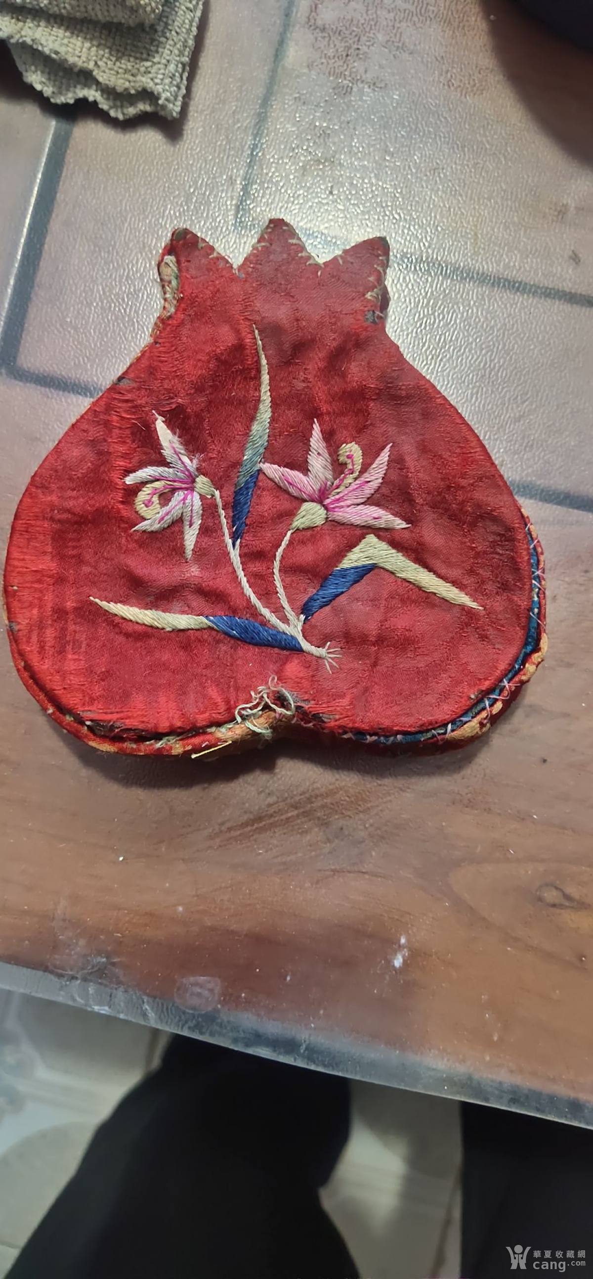 清代绣花石榴形香囊,有两个小洞,余完整。