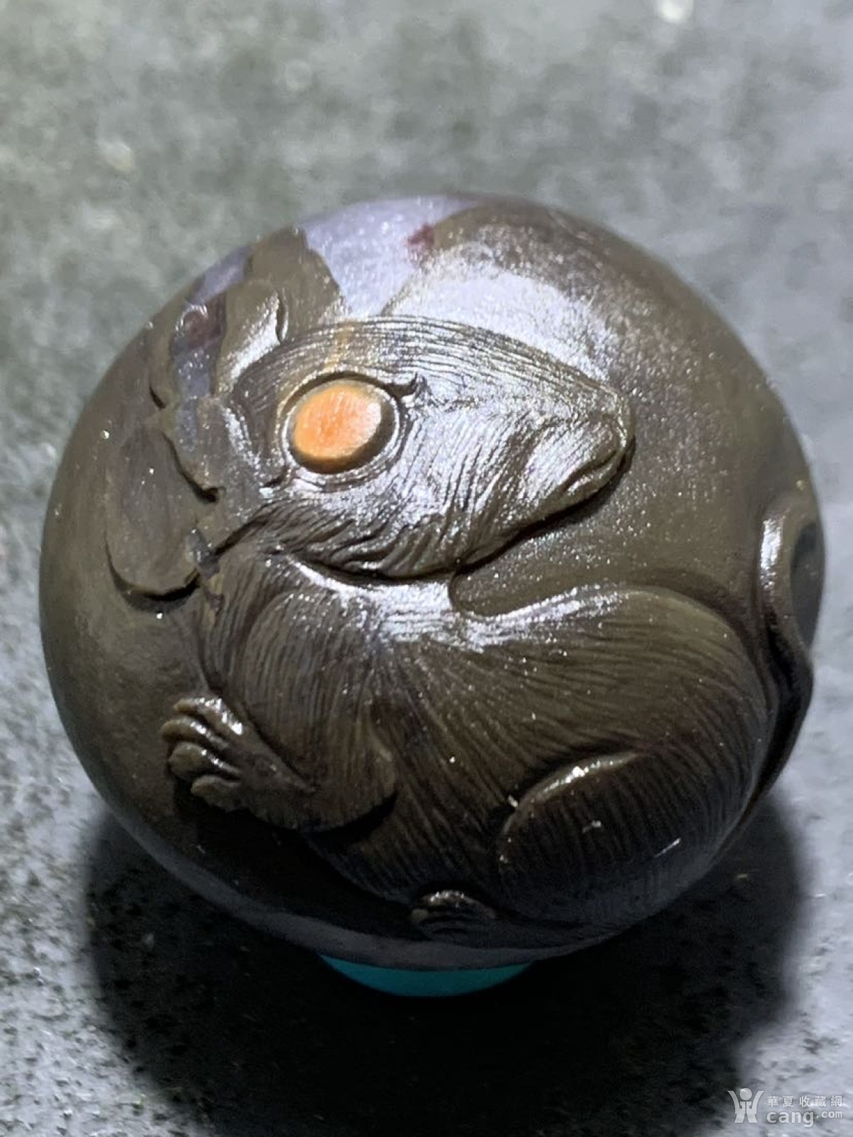 精美冰飘亚光战国红玛瑙手工俏色巧雕鼠来宝大圆珠一个,