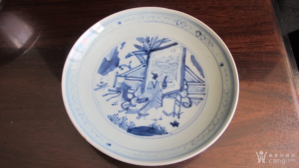 明代青花《天启年制》款仕女庭院纹盘