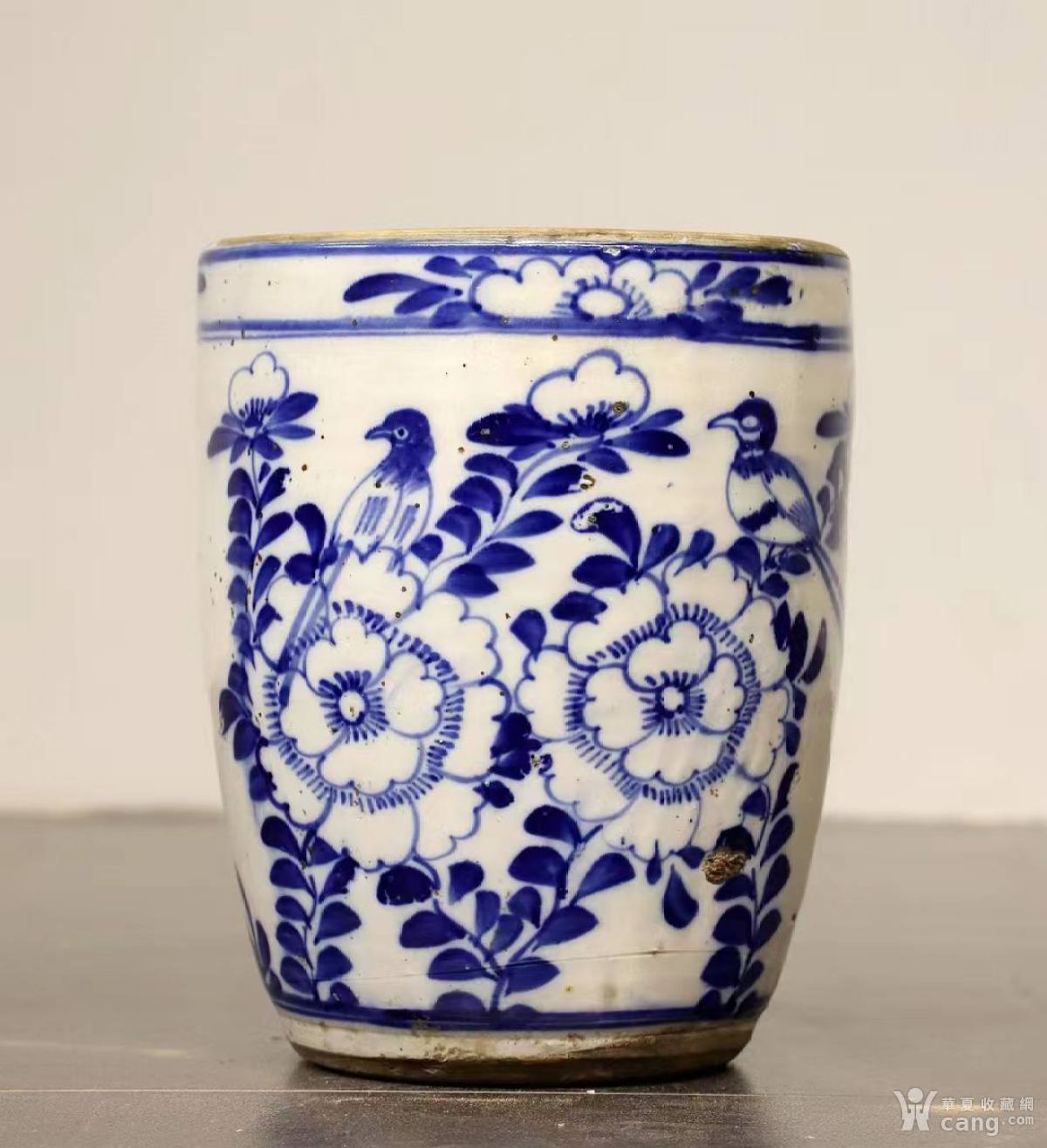 文房卷缸,清早期,磁州窑,白釉青花花鸟图案,器型饱满,色釉纯