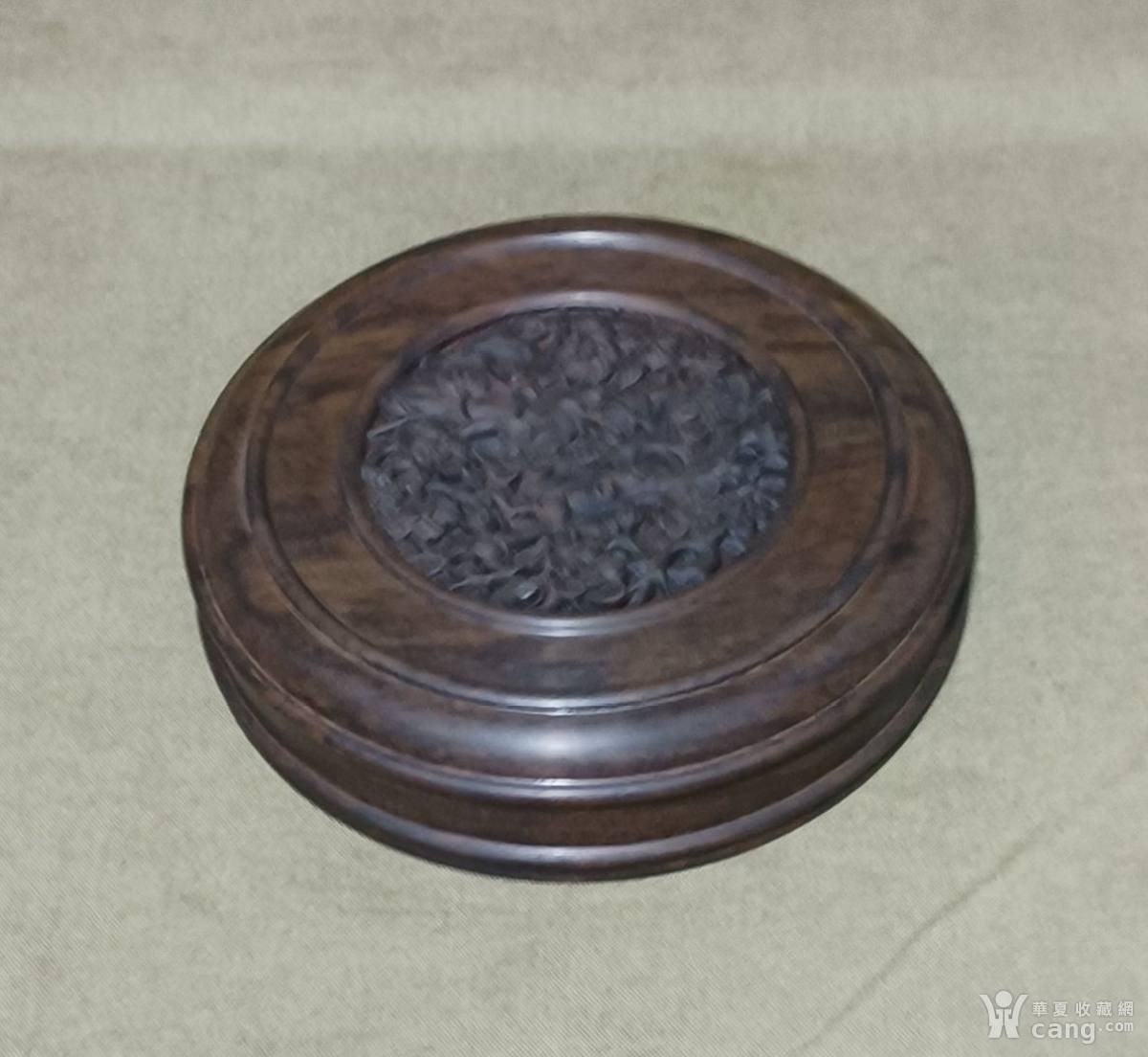 内径10.04厘米 黑檀木 配古董罐 双圈平盖 梅花浮雕