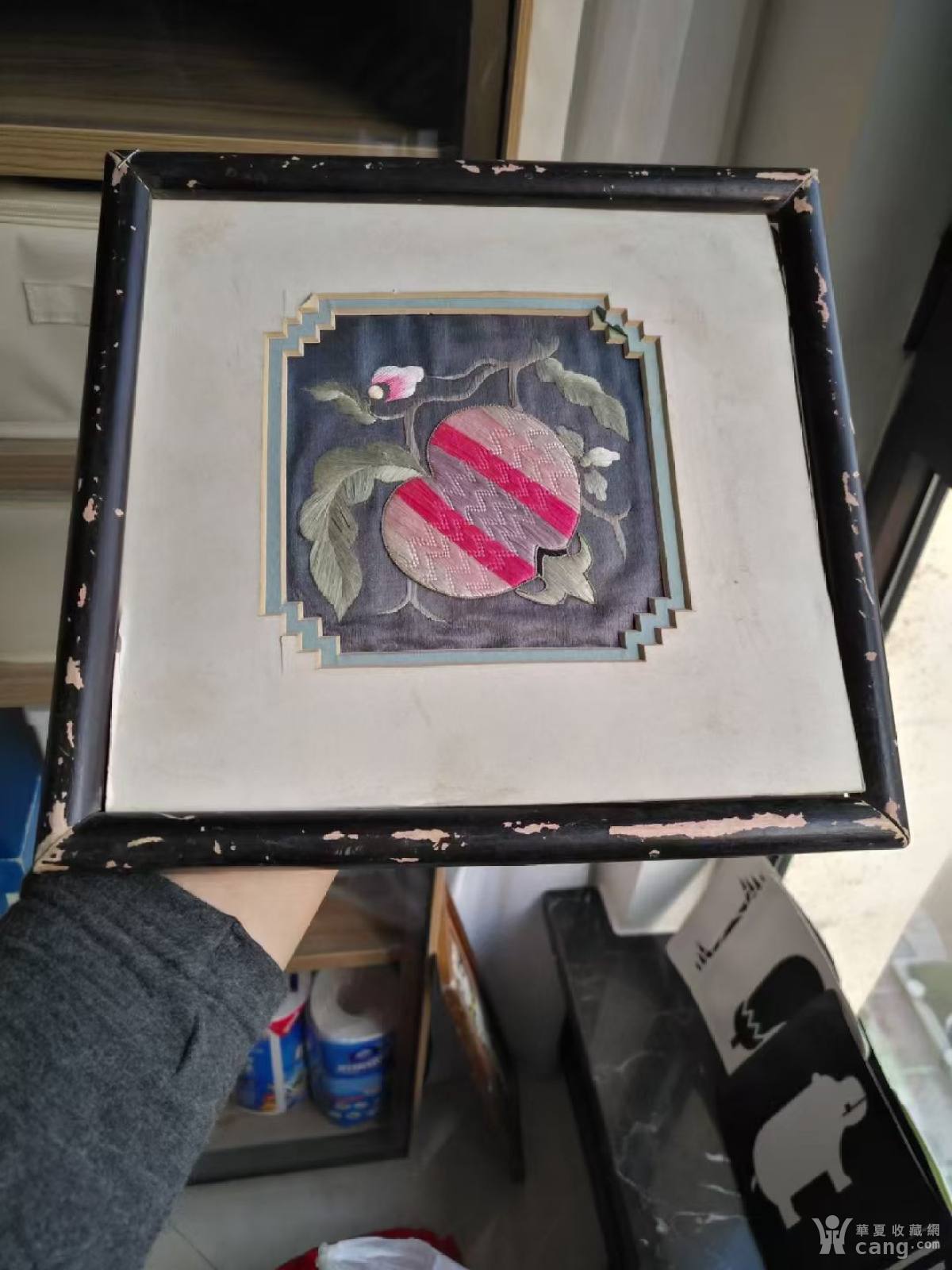 清代服饰贴片"蝠桃纹"绣品