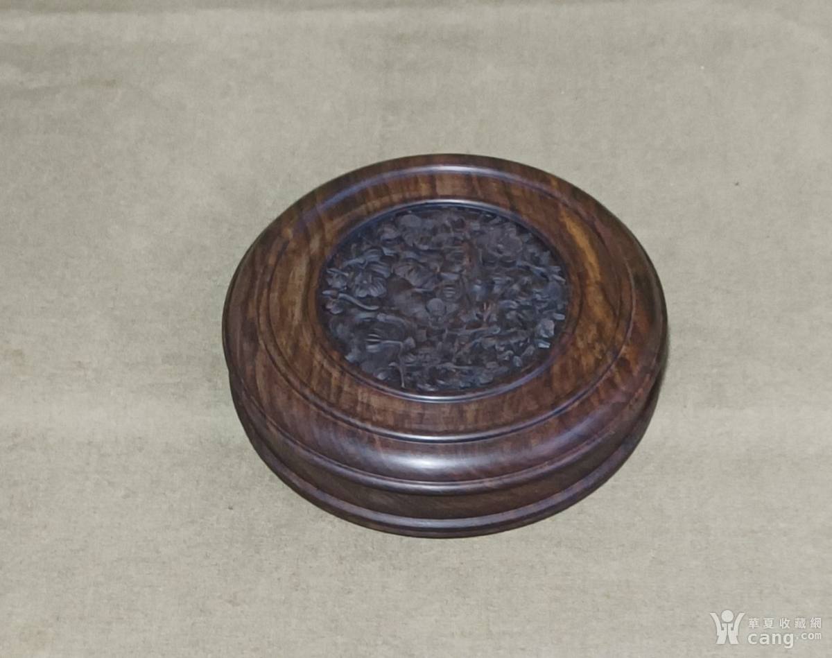内径11.92厘米 黑檀木 配古董罐 双圈平盖 梅花浮雕