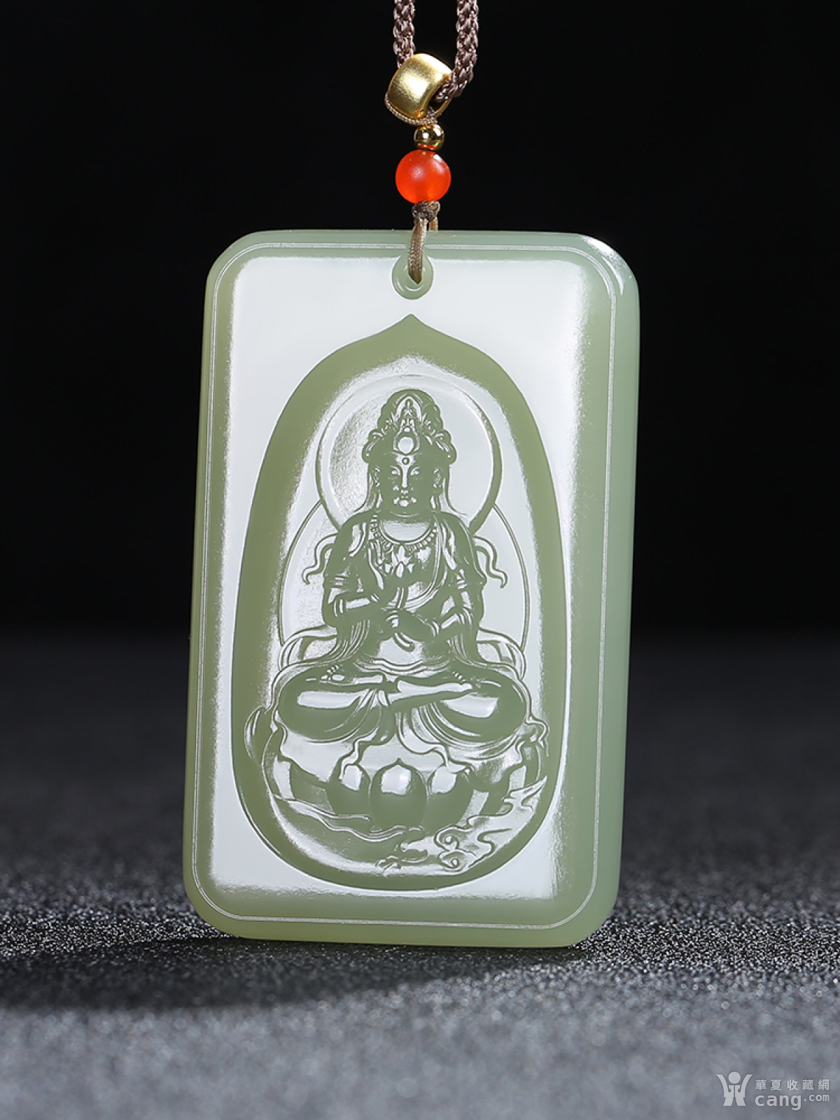 [持莲观音]和田玉青玉油青观音莲花牌子挂件吊坠g