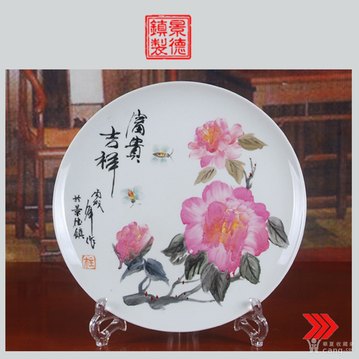 全手工彩绘富贵吉祥图赏盘