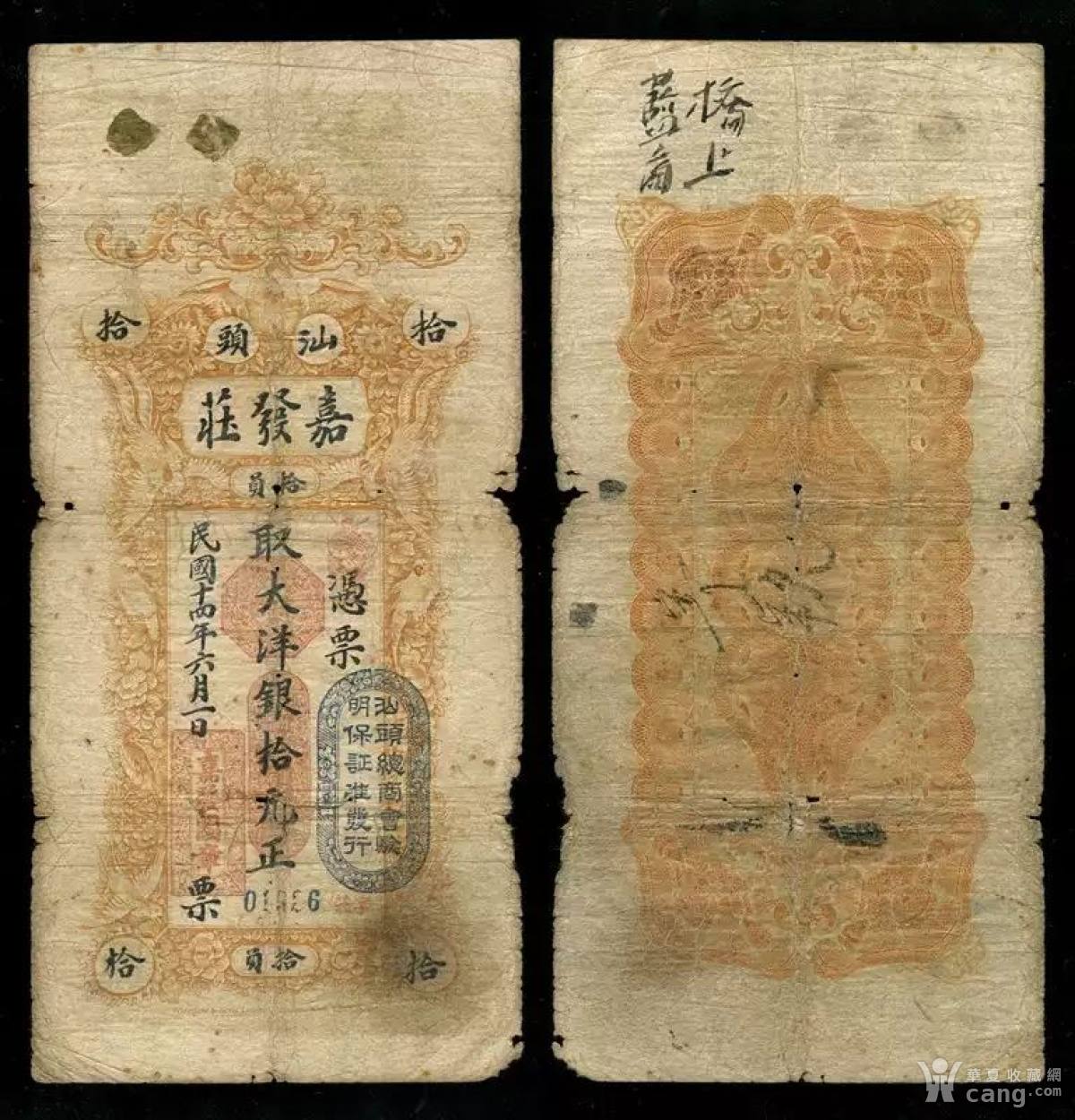 民国14年汕头嘉发庄大洋券10元原票大票幅精美