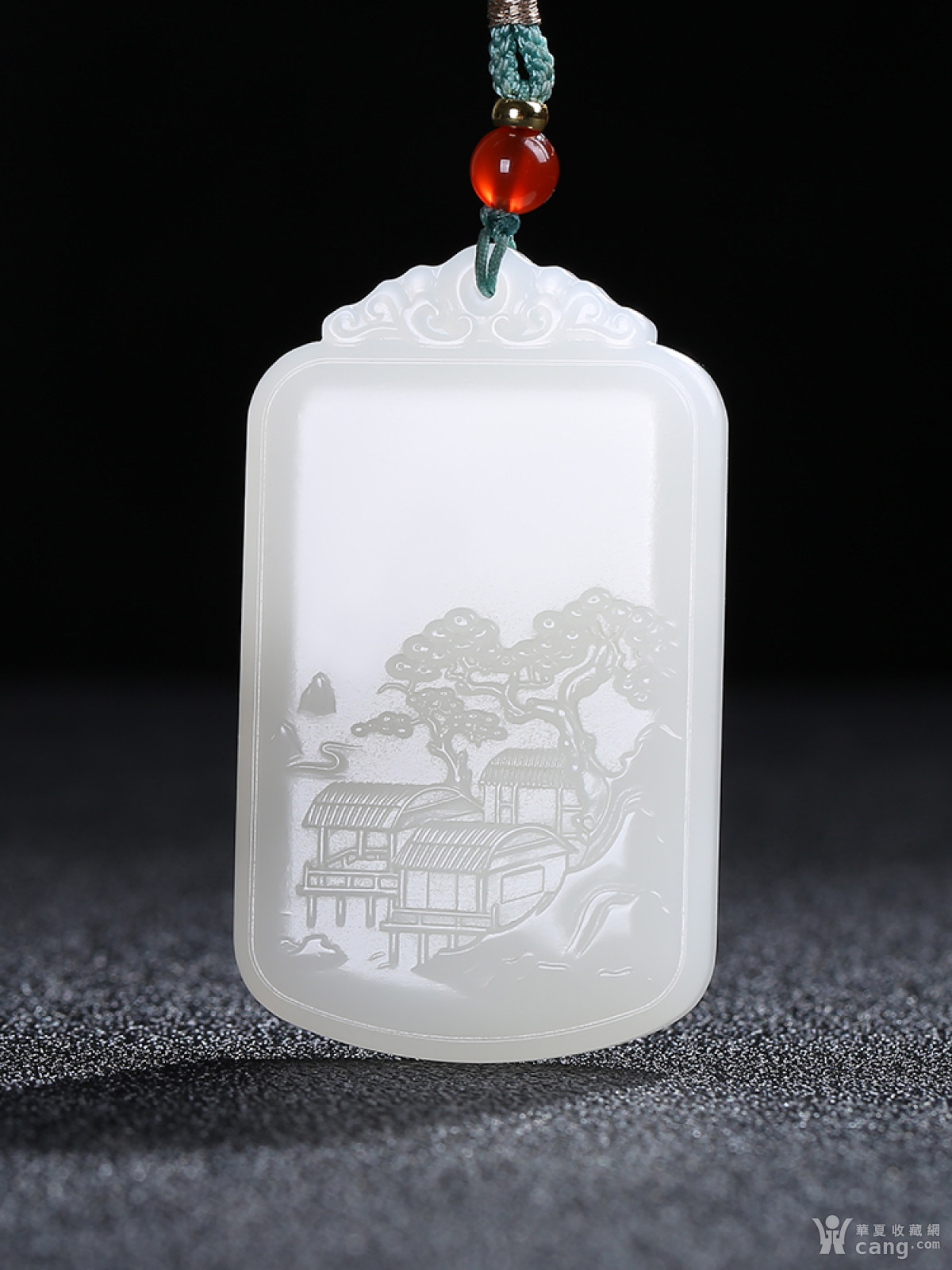 [富贵山居]和田玉白玉烟灰山水福居仿古牌子挂件吊坠g