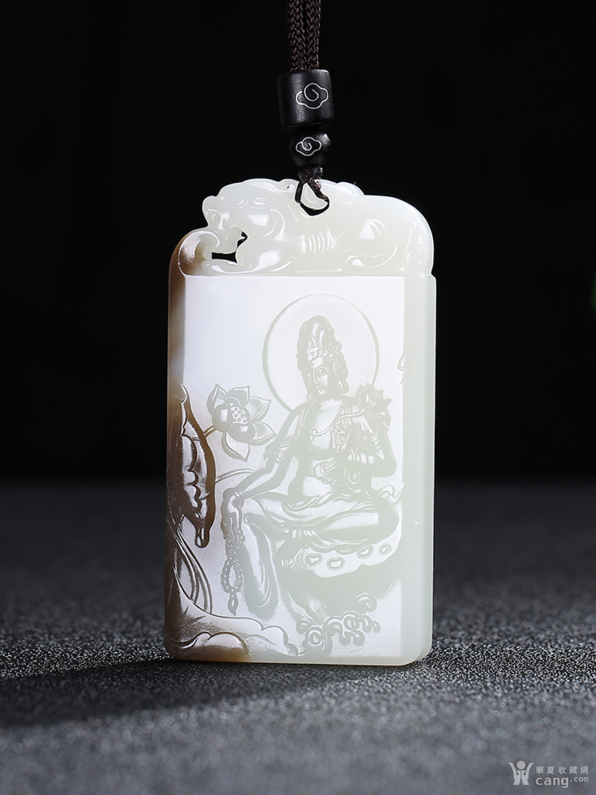 [普渡众生]和田玉糖白玉观音莲花仿古瑞兽牌子挂件吊坠g