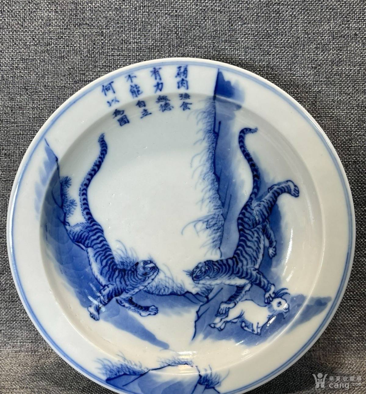 宣统官窑,江西瓷业公司双圈款手绘青花盘,全品相。