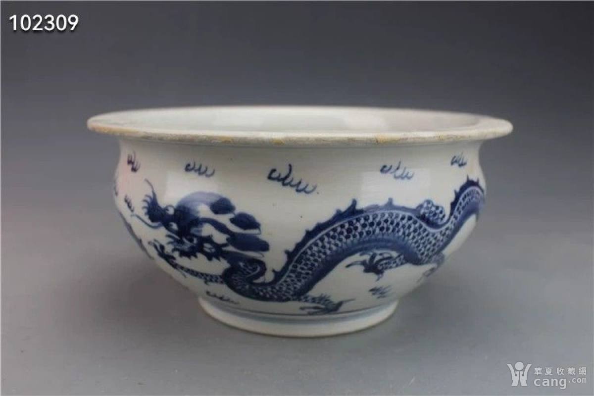 清中期青花双龙赶珠大香炉,古董收藏,明清瓷器,回流精品,包老