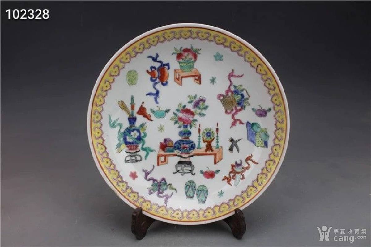 民国细路粉彩博古赏盘,古董收藏,明清瓷器,回流精品
