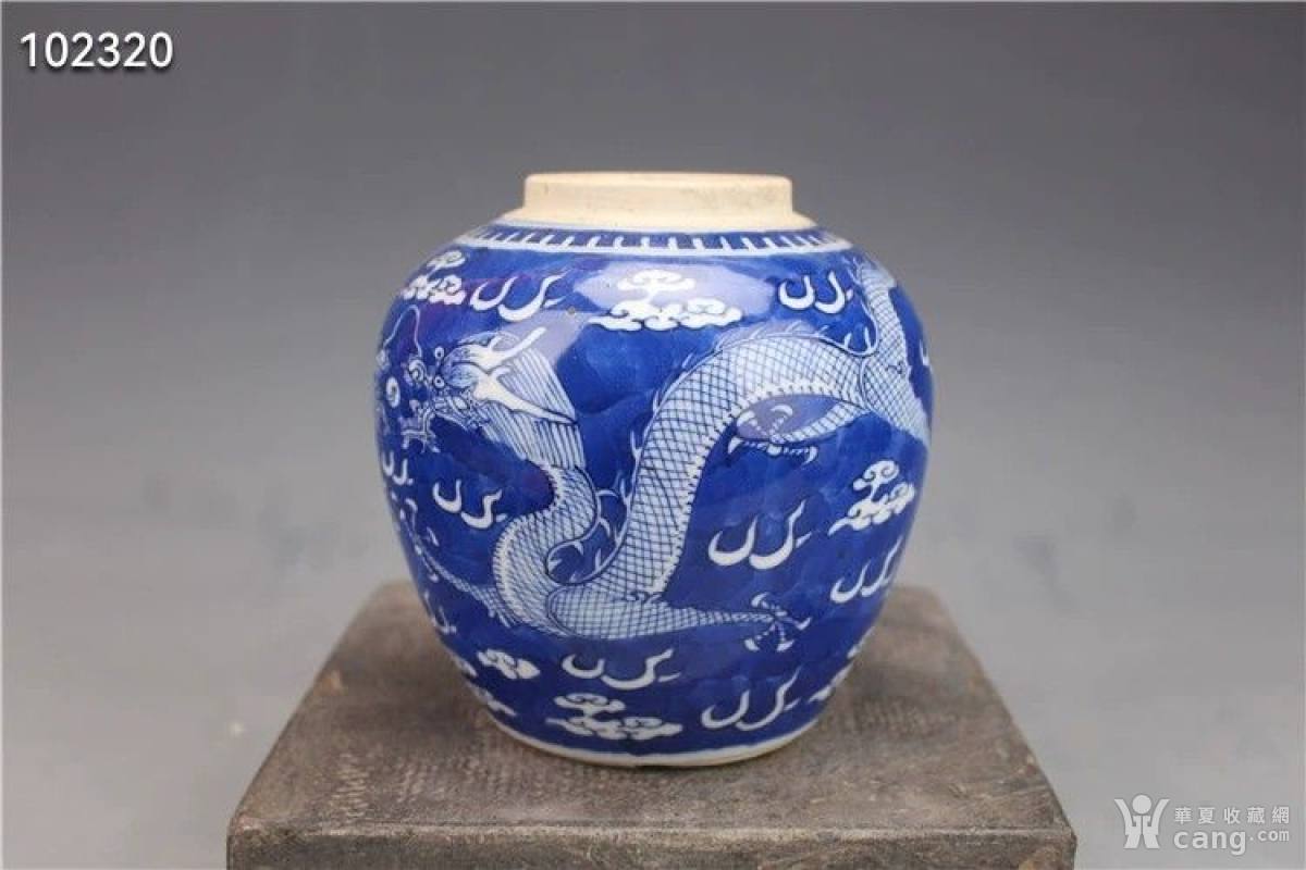 清晚期青花留白云龙罐,古董收藏,明清瓷器,回流精品