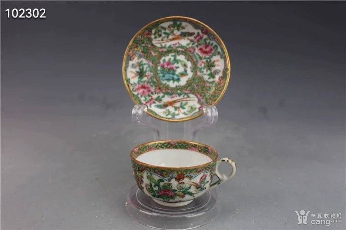 清晚期广彩人物花卉茶茶杯一套,古董收藏,明清瓷器,回流精品,