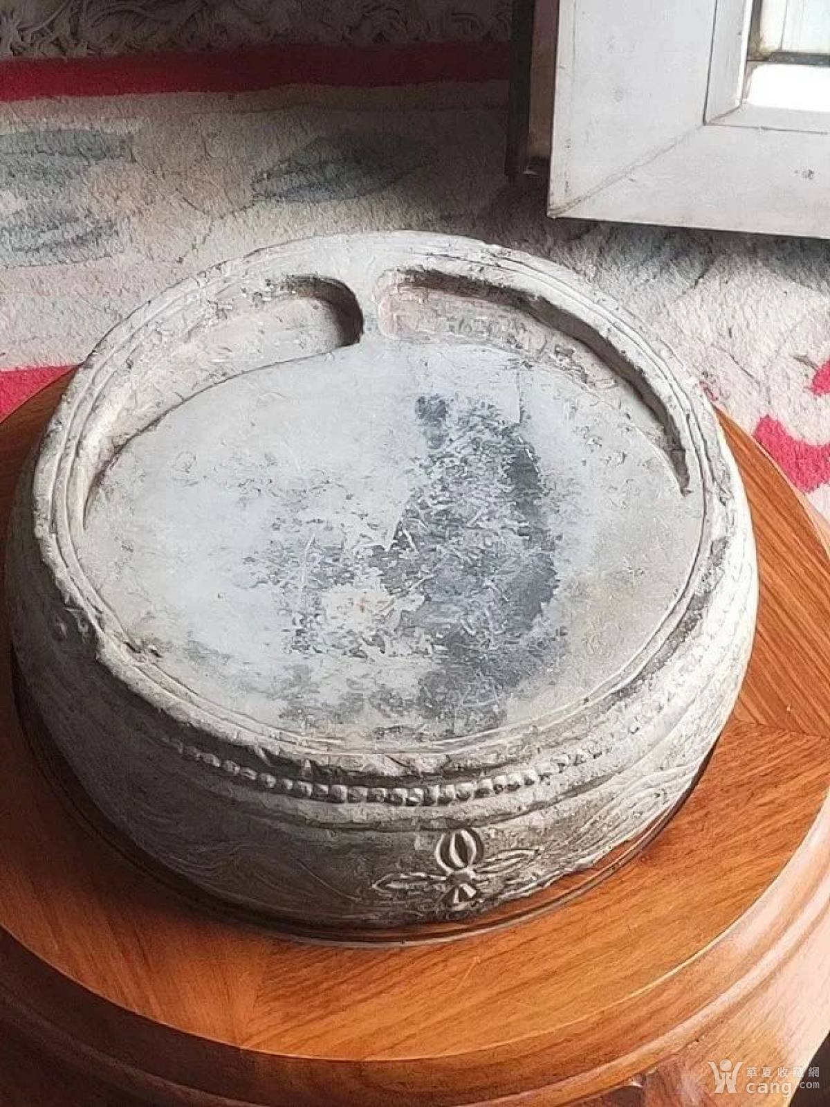 汉代白端鼓式,阴阳鱼,花纹老砚台、尺寸21x7cm重11斤