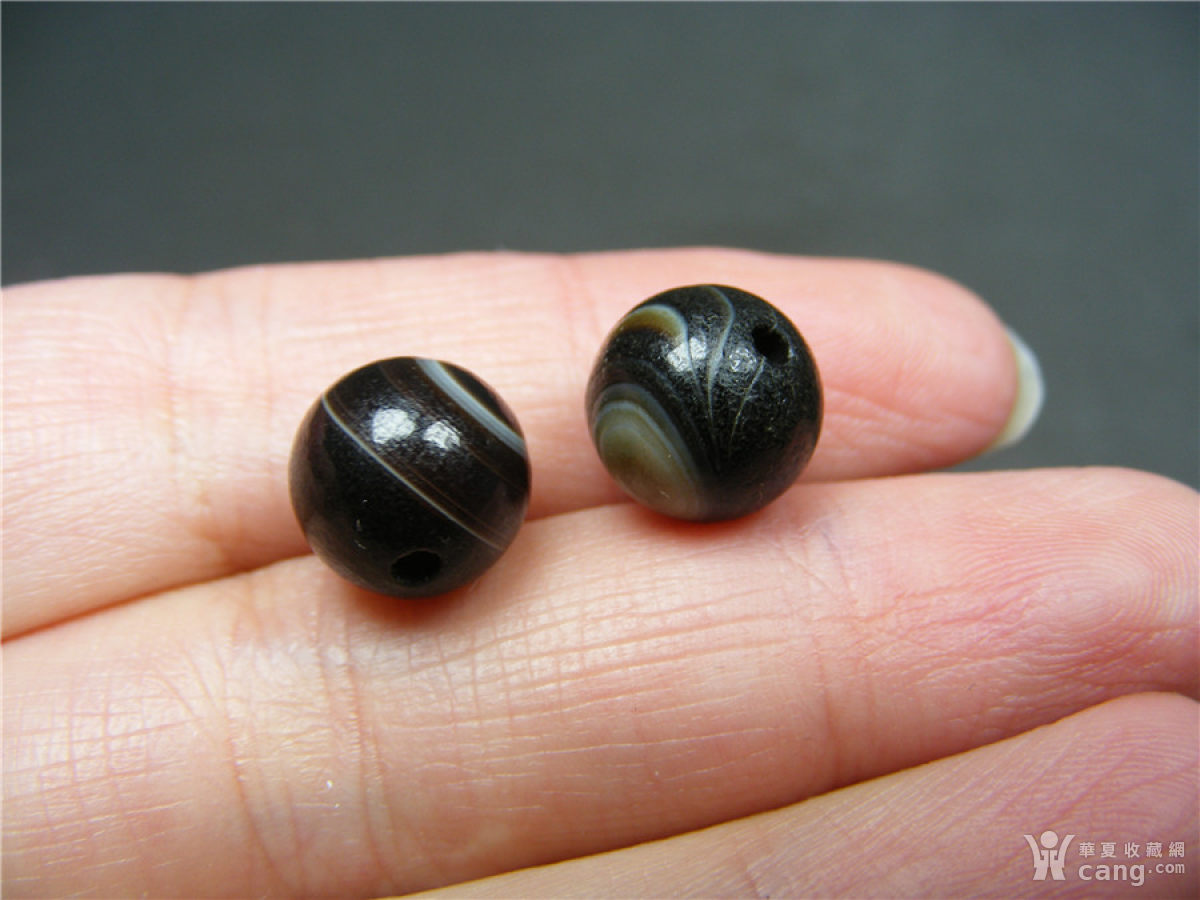 45西亚几十年的黑白缠丝玛瑙中号珠2颗