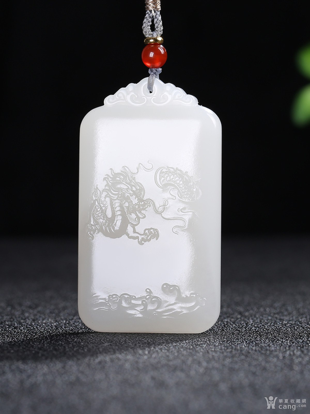 [龙佑一方]和田玉白玉烟紫生肖龙山水仿古牌子挂件吊坠g