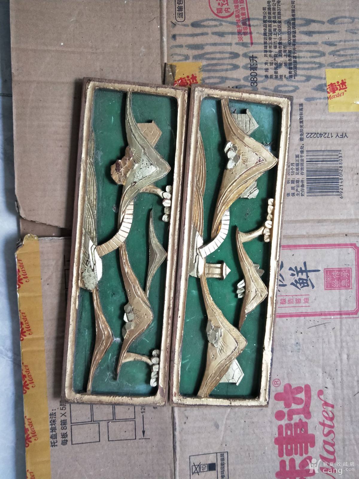 民国木雕描金一对