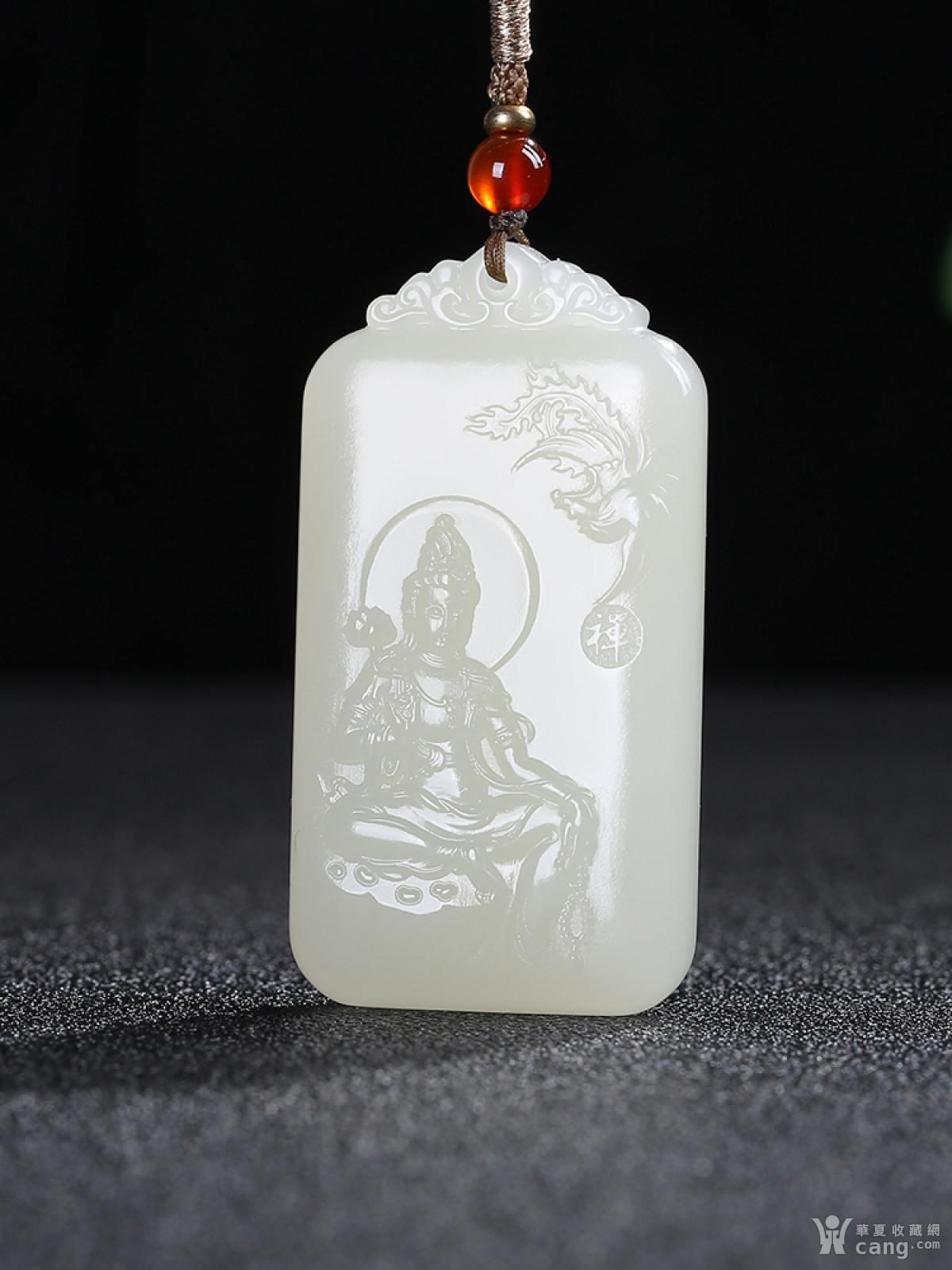 [凤鸣观音]和田玉青白玉观音凤凰仿古牌子挂件吊坠g