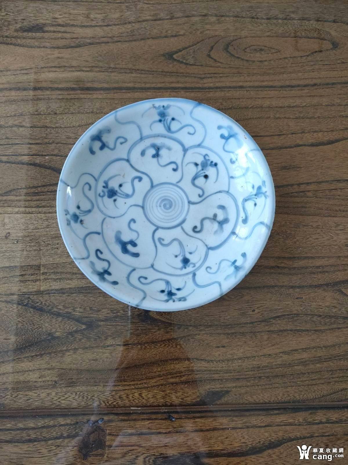 清中期灵芝青花盘,