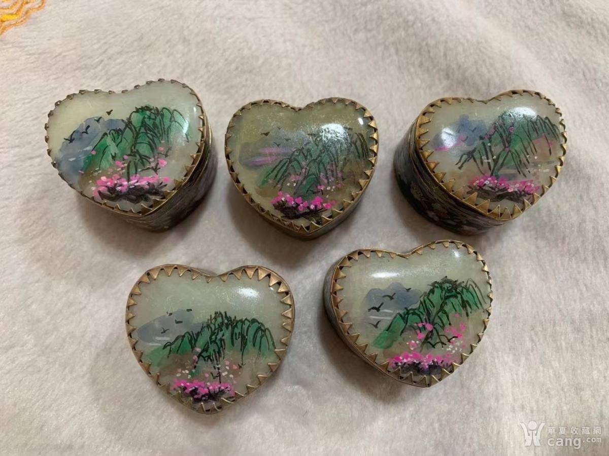 创汇期景泰蓝嵌玉石手绘首饰盒5个