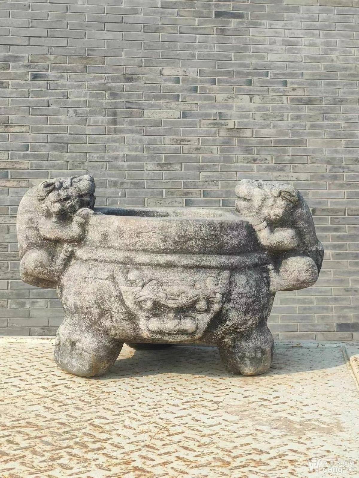 清代,青石,香炉,保存完整,虎首威武霸气,双狮卧爬,寓意深刻