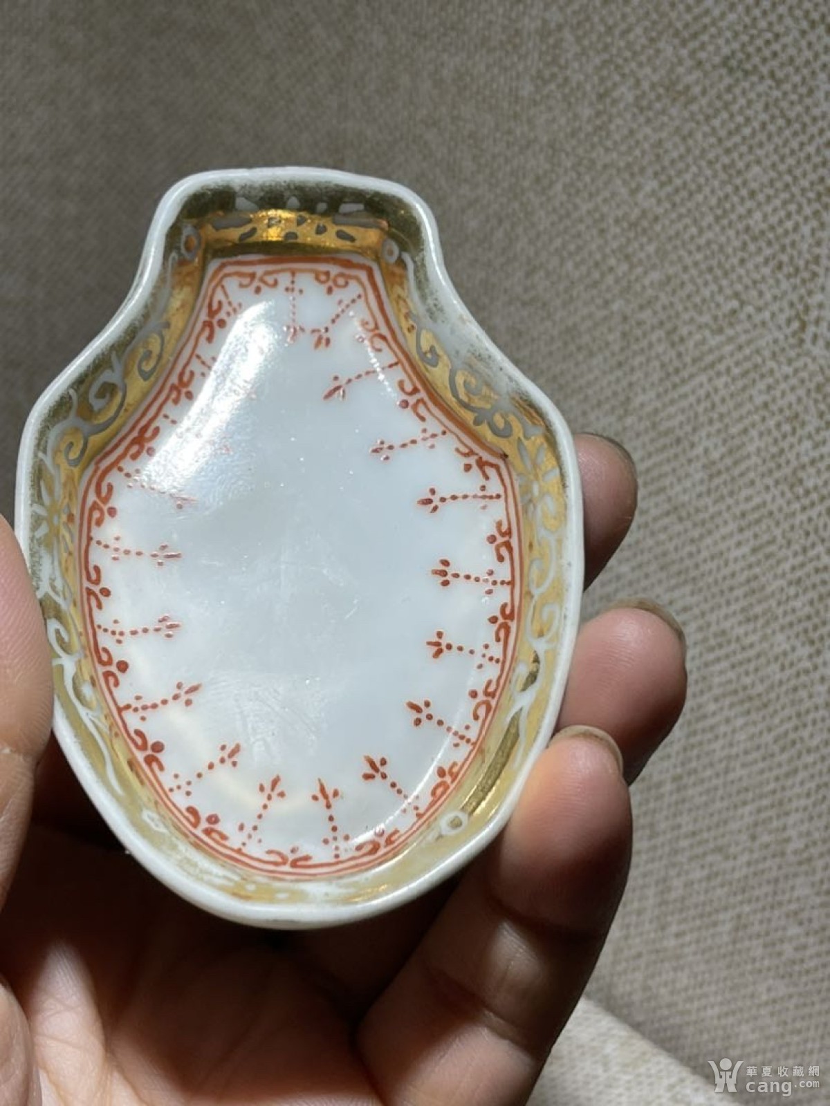 民国粉彩金边细瓷调羹碟 彩绘瓷一个