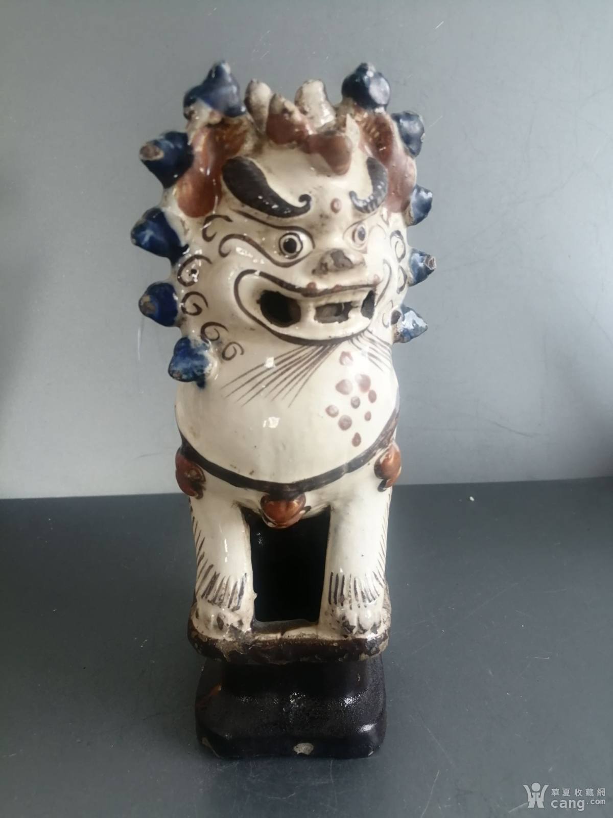 清代磁州窑三彩狮子香插