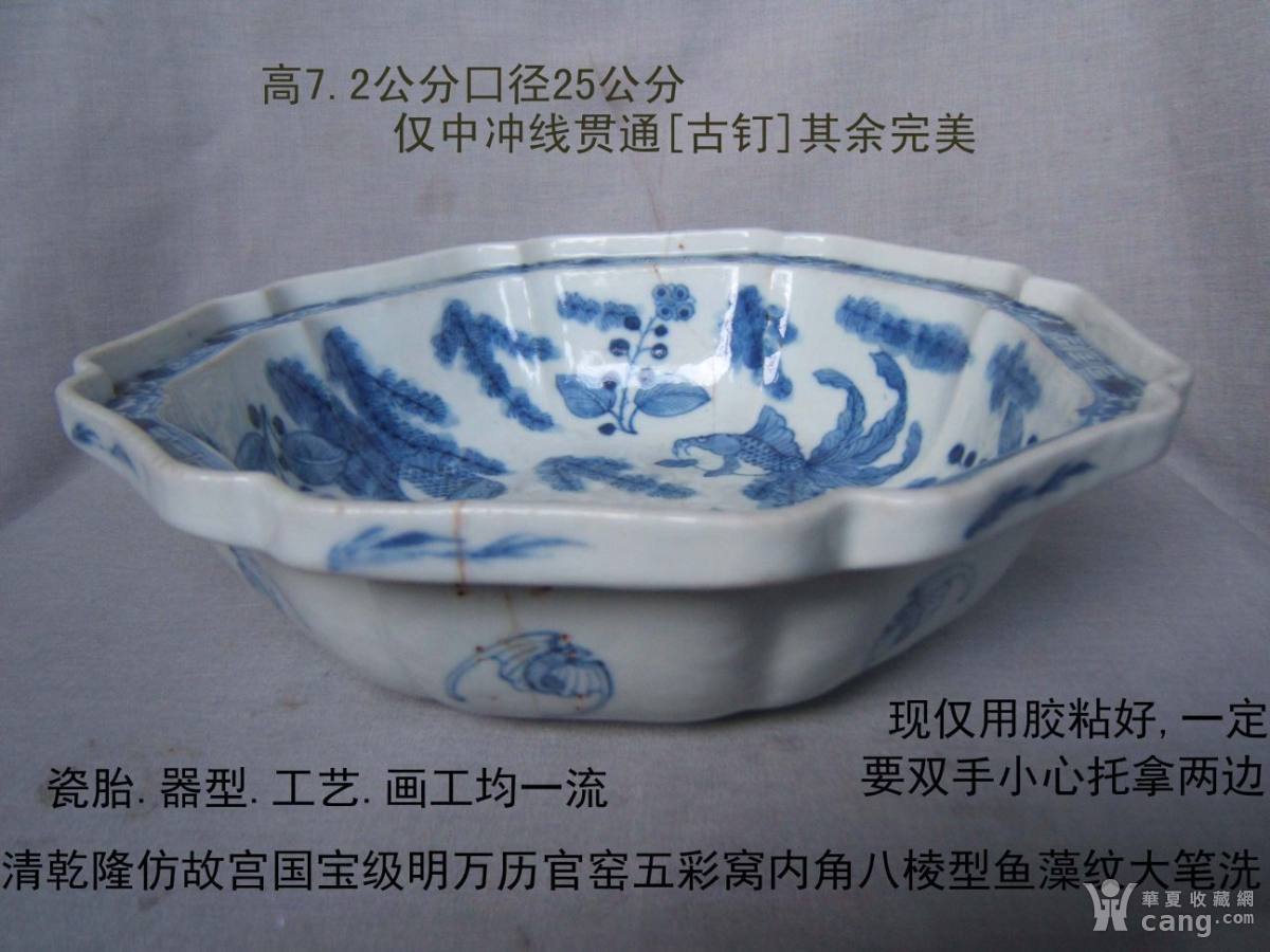 清乾隆青花鱼藻纹窝内角八棱型大笔洗