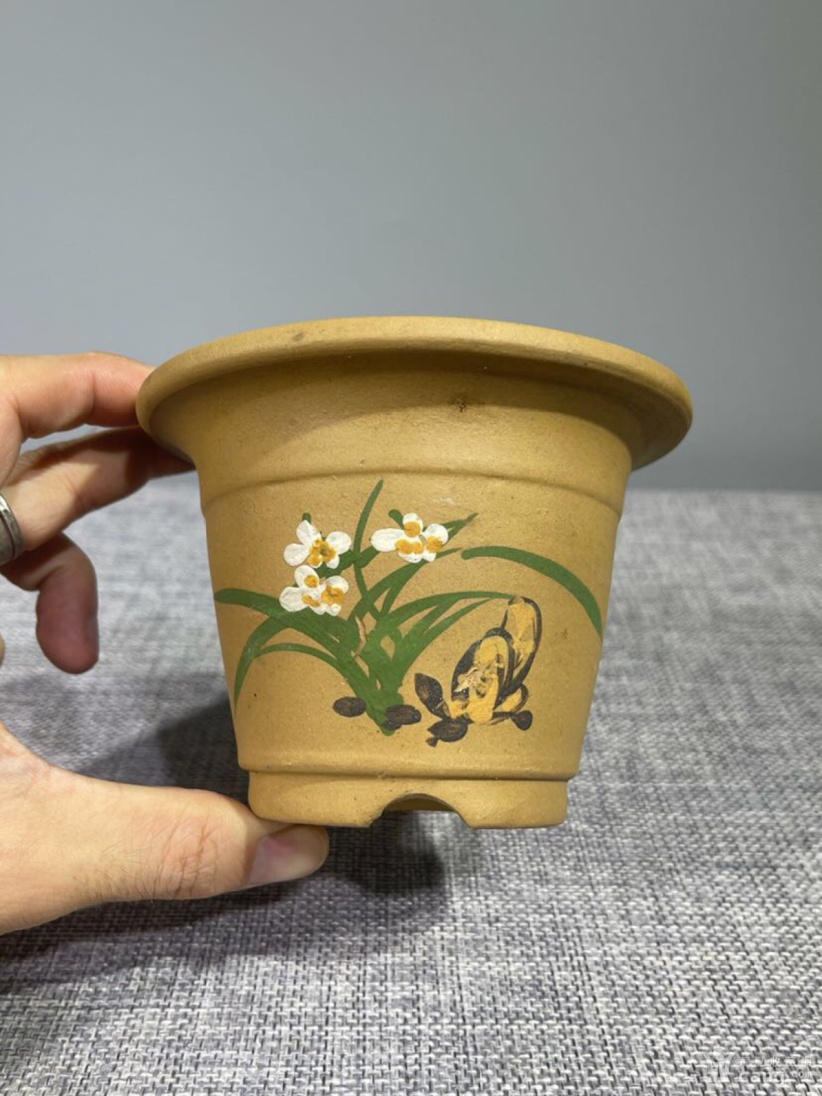BFQ5483 70-80年代宜兴彩绘紫砂菖蒲