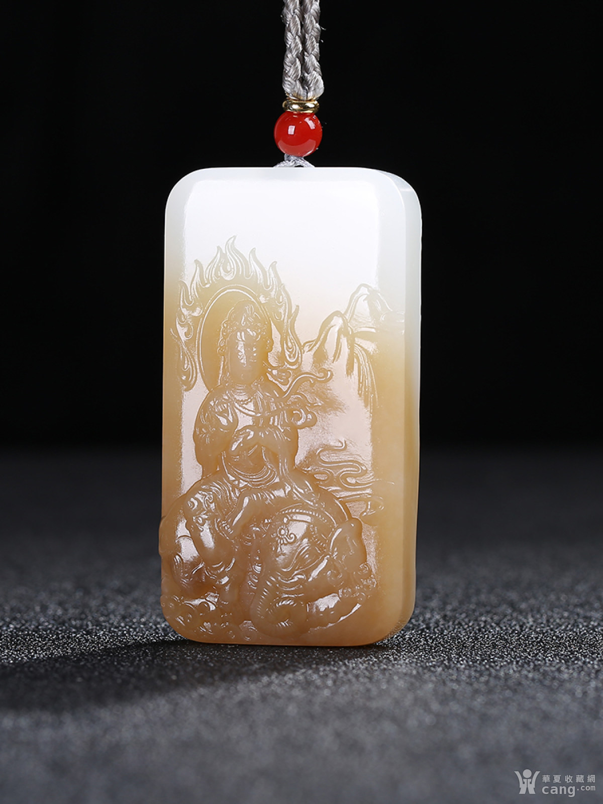 [普贤菩萨]和田玉糖白玉普贤菩萨守护神莲花牌子挂件吊坠g