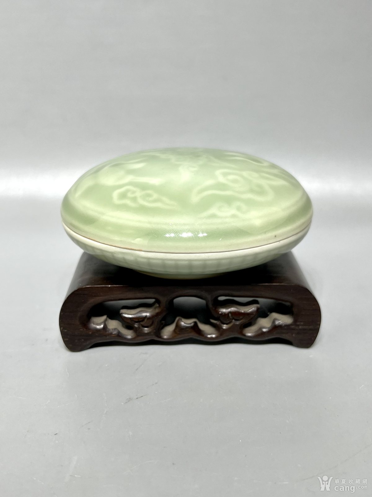民国精品粉青釉祥云仙鹤纹印泥盒