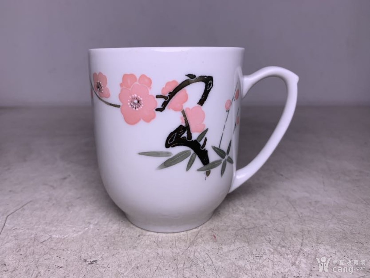 文革釉中彩釉下彩红梅绿竹花卉茶杯